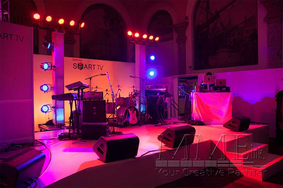 MMEink provides custom dance floor and stage installations for special events. Our services include rentals of light up dance floors and stages. We even offer black and white dance floors, and seamless dance floor rentals for both corporate and private events. Our light up stages and dance floors come in a variety of sizes and configurations making it ideal for fashion show events, and corporate parties.