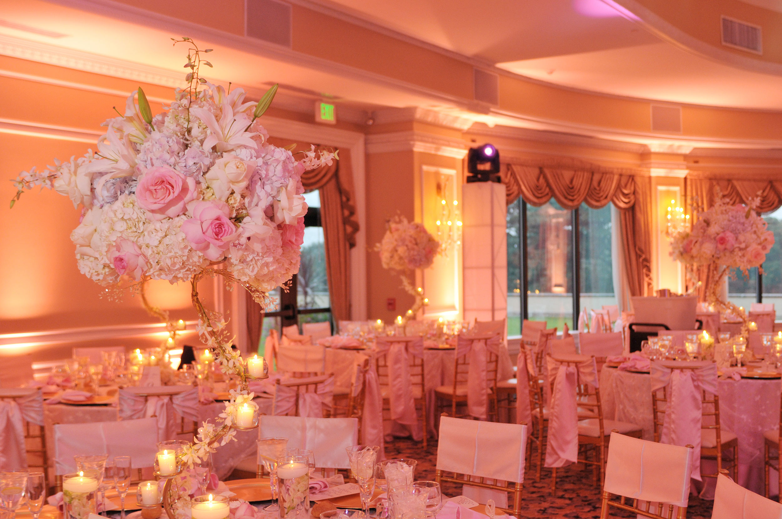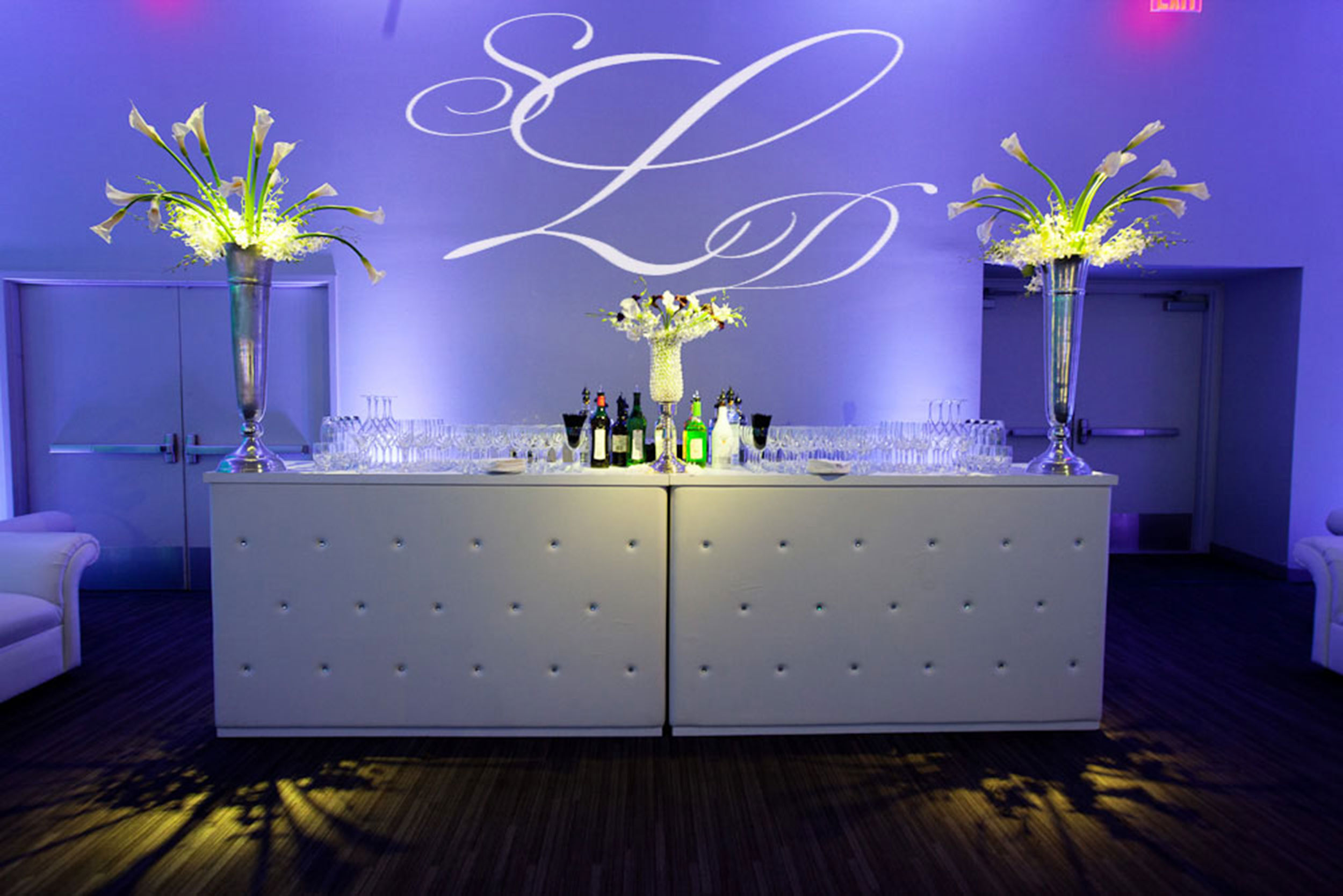 MMEink lighting designers will provide you with the very best in lighting services for your special day. Lighting can be used to enhance your theme and give your wedding a unique feel, highlight important moments, bring excitement to your reception, and accentuate the visuals of your floral arrangements and décor. Our lighting services include; Ambient Lighting, Pin Lighting, Up Lighting, Personalized Monograms, Intelligent Lighting, LED Lighting, and Laser Light shows.